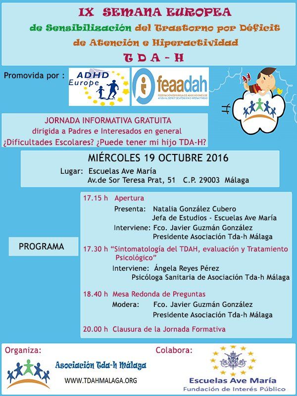 Desde la Asociación Tda-h Málaga, se realizarán las siguientes actividades en Málaga: